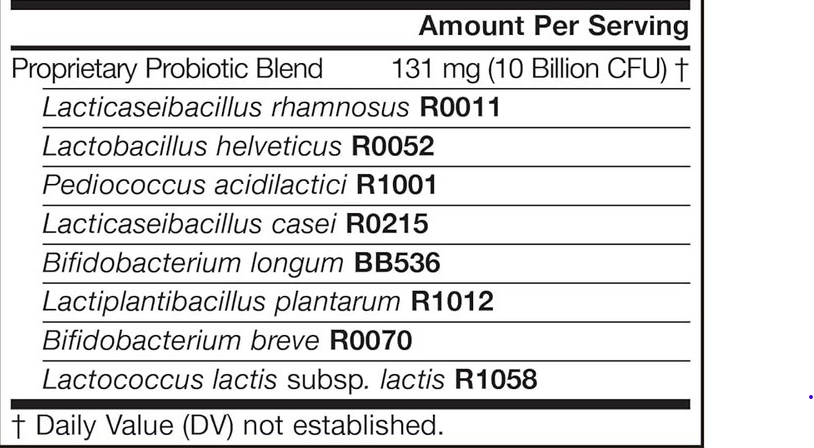 락토바실러스를 포함한 8가지 균주로 이루어져 있고 총 100억 유산균을 가지고 있어 매우 효과적입니다.