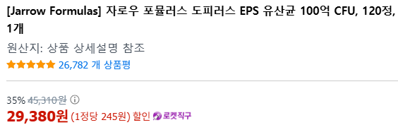 현재 별점 4.7점, 리뷰 26782개를 가진 재로우 자로-도필러스 EPS 유산균 100억 베지 캡, 60정, 2개! 지금 쿠팡에서 더 저렴하고 다양한 기타건강식품 제품들을 확인해보세요.